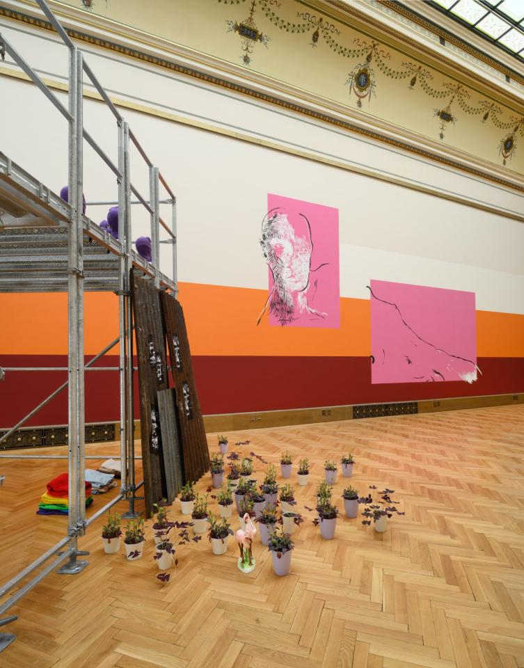 Mauve, Jim and John, 2021, installation, vue de l’exposition collective Shifted Realities, 2023, Galerie Rudolfinum, Prague, Tchéquie, détail, photo Ondřej Polák, Galerie Rudolfinum