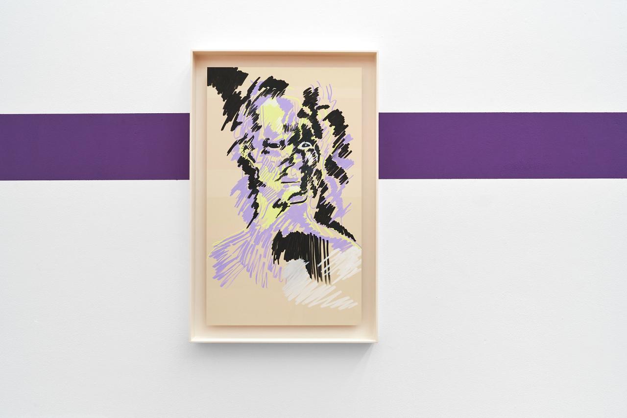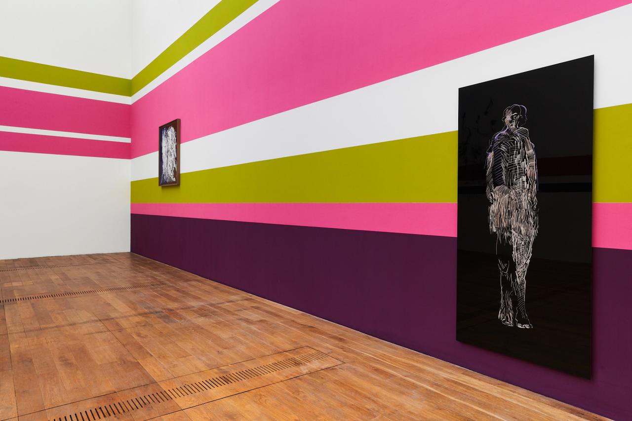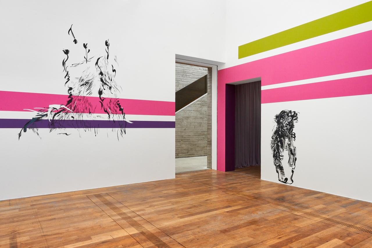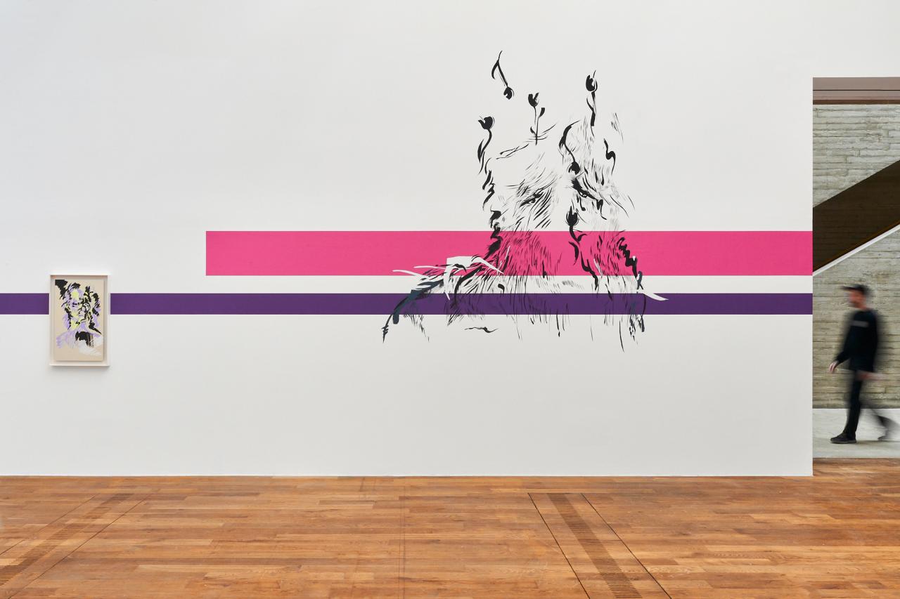 The Purple Chamber Series (Standing figure), 2024, peinture murale, vue de l’exposition To Be Blindly Hopeful, 2024, Mostyn, Llandudno, Royaume-Uni, détail, photo Rob Battersby