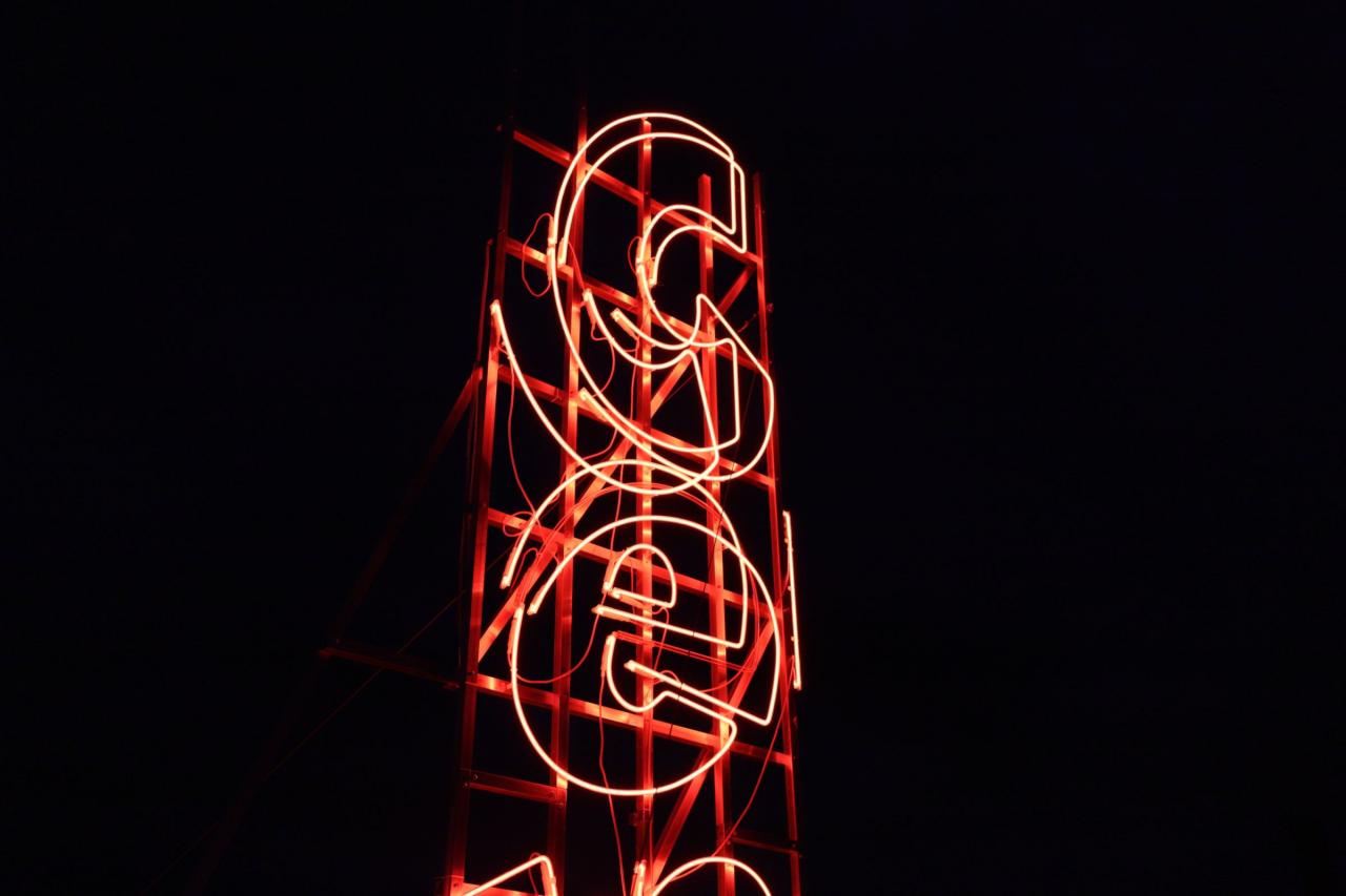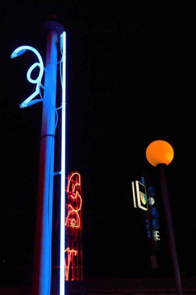 Vestiges d’éclairages, technologie d’incandescence, les rayons rouges impriment dans nos yeux, des signes au néon qu’une sensible persistance, remémore à nos pupilles ce qu’est voir le feu.