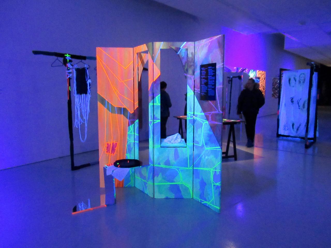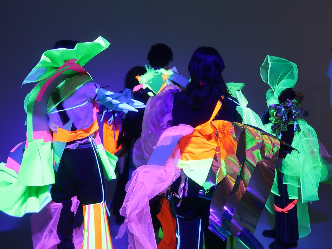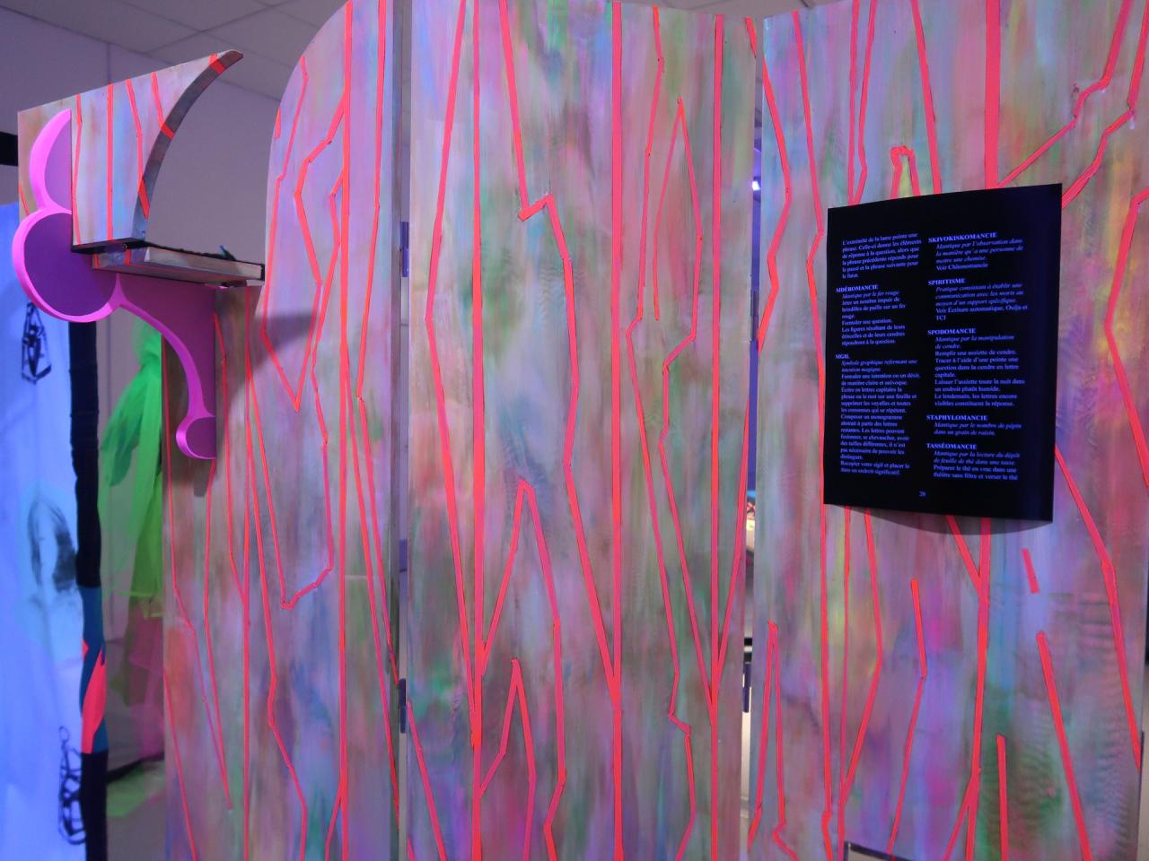 Troubleshop, 2023, installation, en collaboration avec Maud Cazaux, vue de l’exposition FLUO PARTY : art, mode, musique, 2023, La Fabrique, Toulouse
