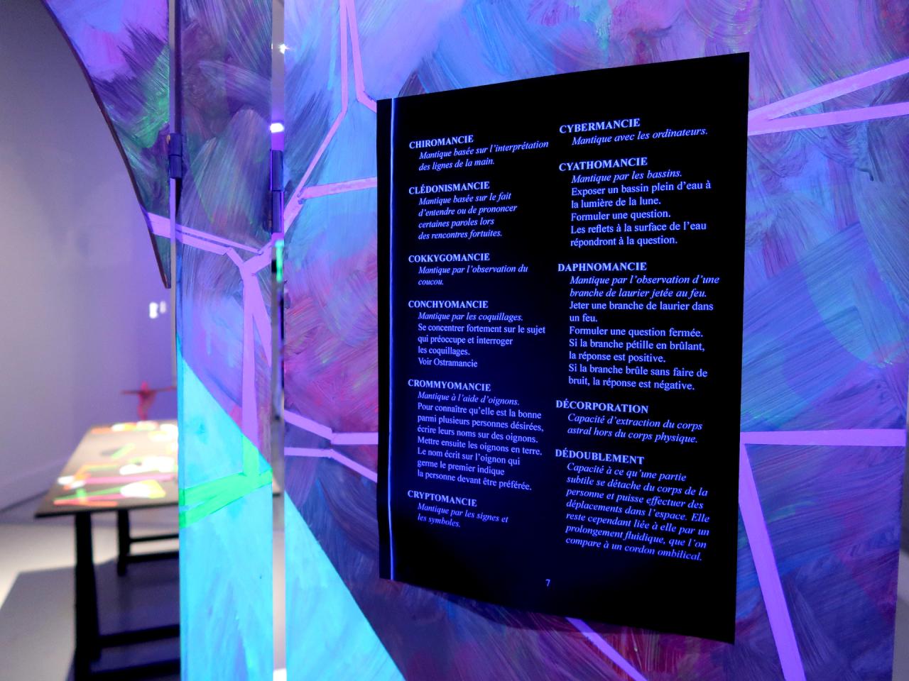 Sans titre (mobilier de déguisement n°2), 2023, MDF, acrylique, charnières, miroir et adhésif, 200 x 200 cm (dimensions variables), page 7 de No Picture n°4, 2013 - en cours, tirage photo pigmentaire satiné, 42 x 29, 7 cm, vue de l’exposition FLUO PARTY : art, mode, musique, 2023, La Fabrique, Toulouse, détail
