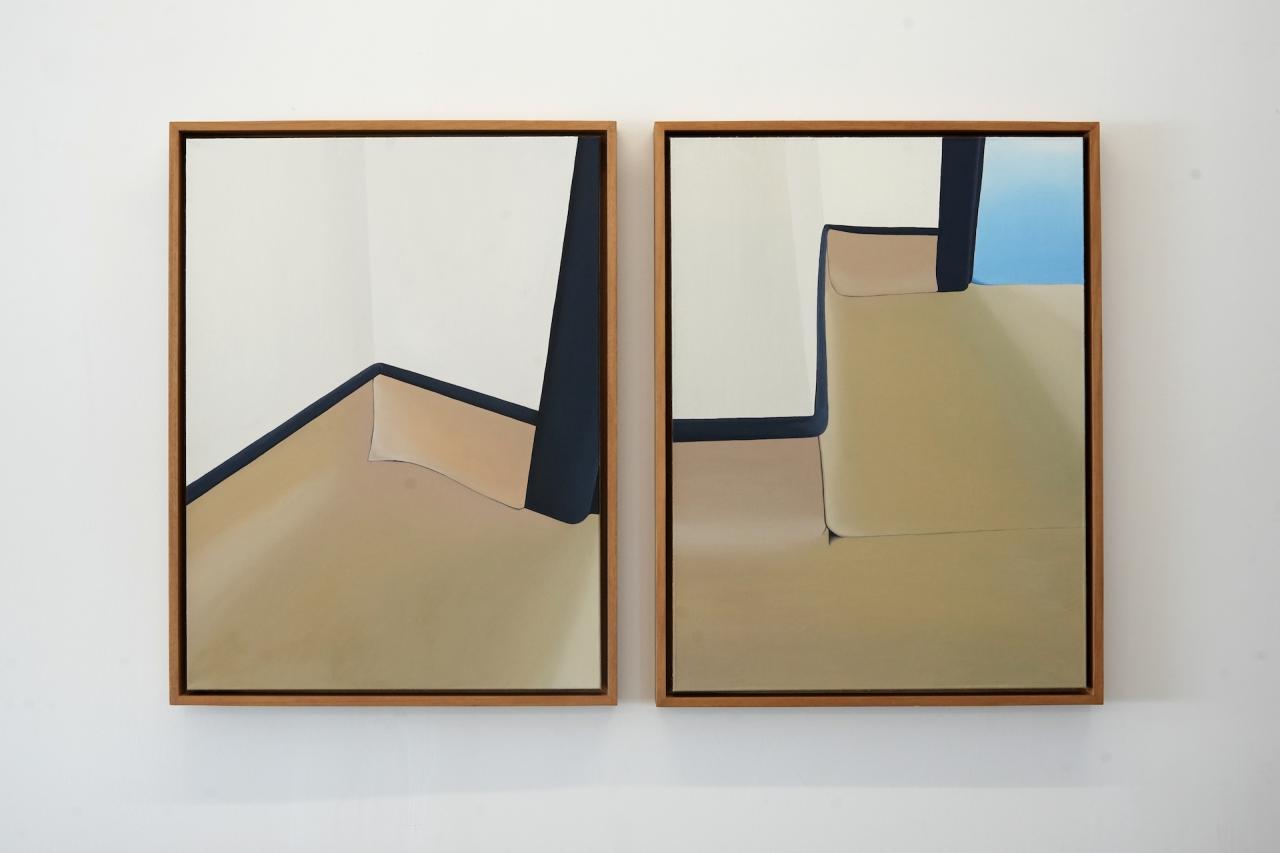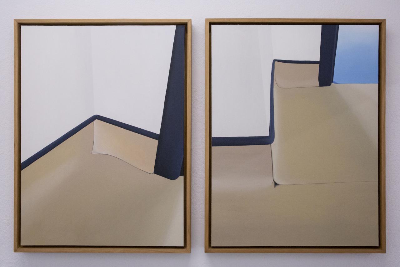 Litige Linoleum (stucco 1), Litige Linoleum (stucco 2), 2024, huiles sur lin, 60 x 80 cm chacune