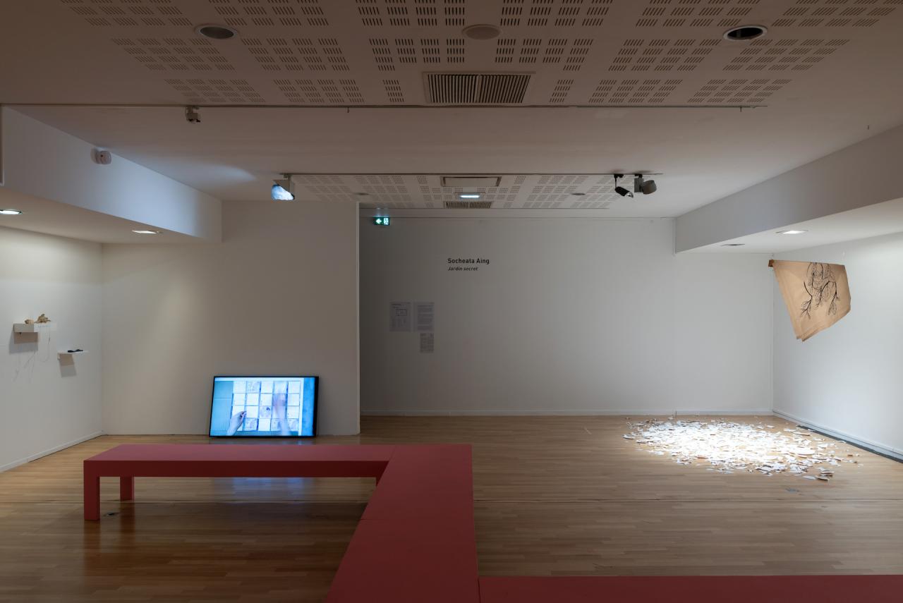 Socheata Aing multiplie les médiums pour raconter des histoires. Avec la performance, la peinture, la broderie, le film, l’installation et l’écriture, elle prend plaisir à collecter, explorer et relier les histoires qui gravitent depuis toujours autour d’elle, pour composer la sienne, faite de toutes à la fois.
