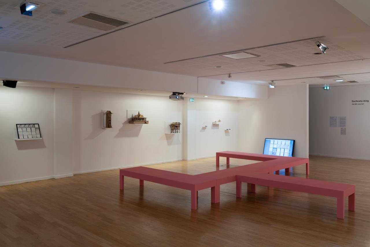 Panser les images, 2022-2025, série de 4 maquettes en carton, vue du projet d’exposition Jardin secret, 2025, dans le cadre de l’exposition collective Mezzanine Sud – Prix des Amis des Abattoirs, 2025, Les Abattoirs, Musée – Frac Occitanie Toulouse, Toulouse, détail, photo Cyril Boixel