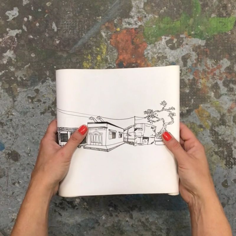 Le dessin de reportage je le pratique seule au fil des commandes et des rencontres dans le champs du social, de la culture, des marges et des lisières mais également dans un tandem bien rodé avec la journaliste Bérangère Cagnat. Nous avons déjà fait des reportages écrits & dessinés, ensemble et en immersion, dans différents lieux en France et en Europe avec toujours, en filigrane, la question de la coopération, de l’utopie tangible, du rapport à l’environnement et de la mémoire des lieux et des gens. Ces récits graphiques s’inscrivent volontairement dans le champ du « journalisme de bonnes nouvelles ».