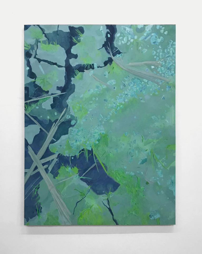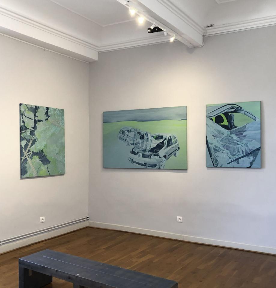 Couserans D35, 2021, série de 5 peintures, vue de l’exposition collective Le vert est une couleur inutile, 2023, La Fabrique, Toulouse