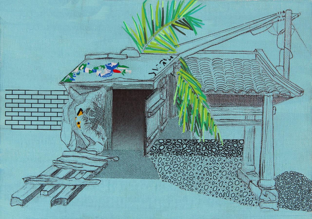 Cu-chi synthese, 2012, dessin, acrylique, letraset, graphite et feutre sur carton toilé, 18 x 24 cm