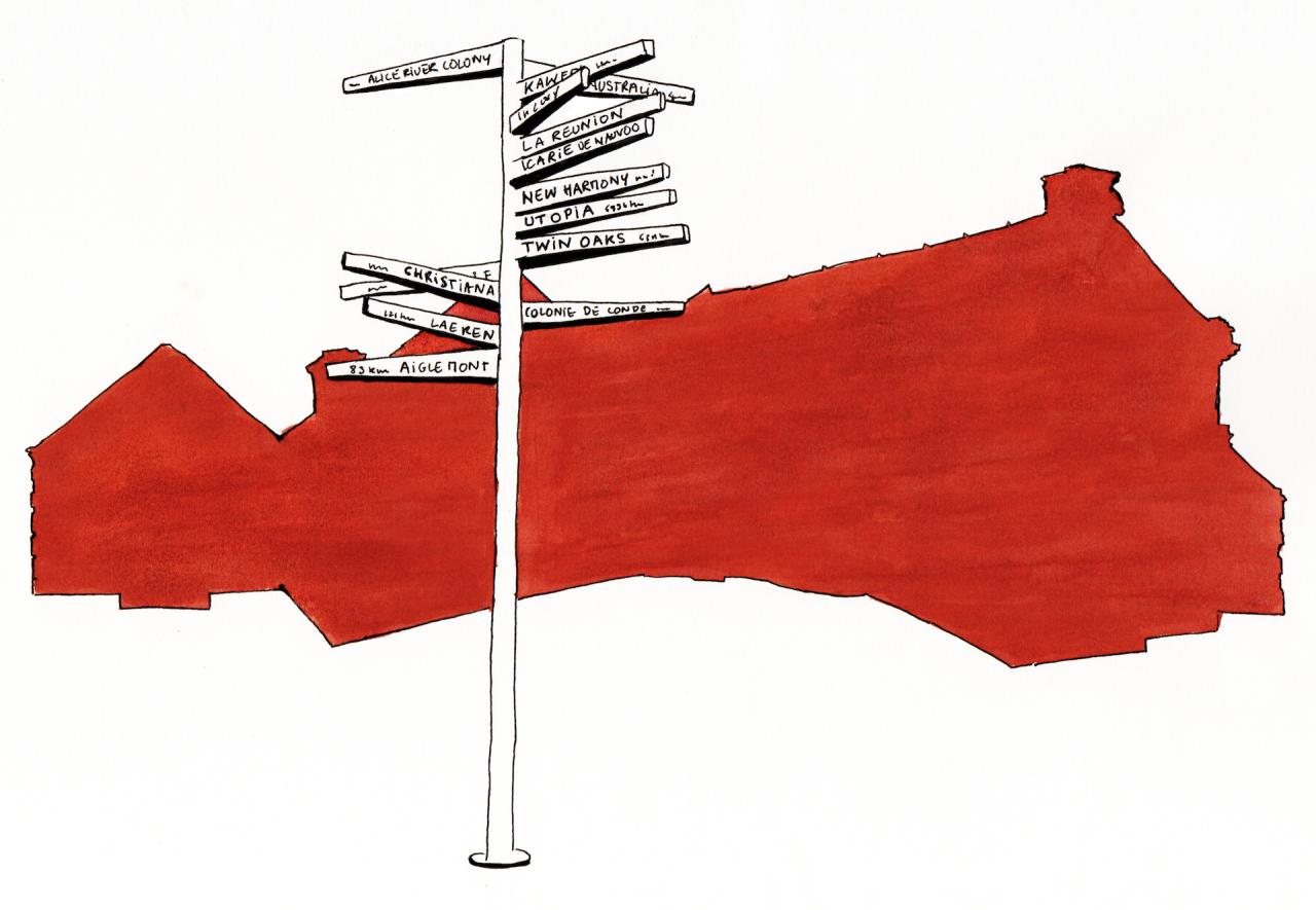 Le familistère de toutes les utopies, 2015, série de dessins de reportage, feutre à alcool sur layhout, détail