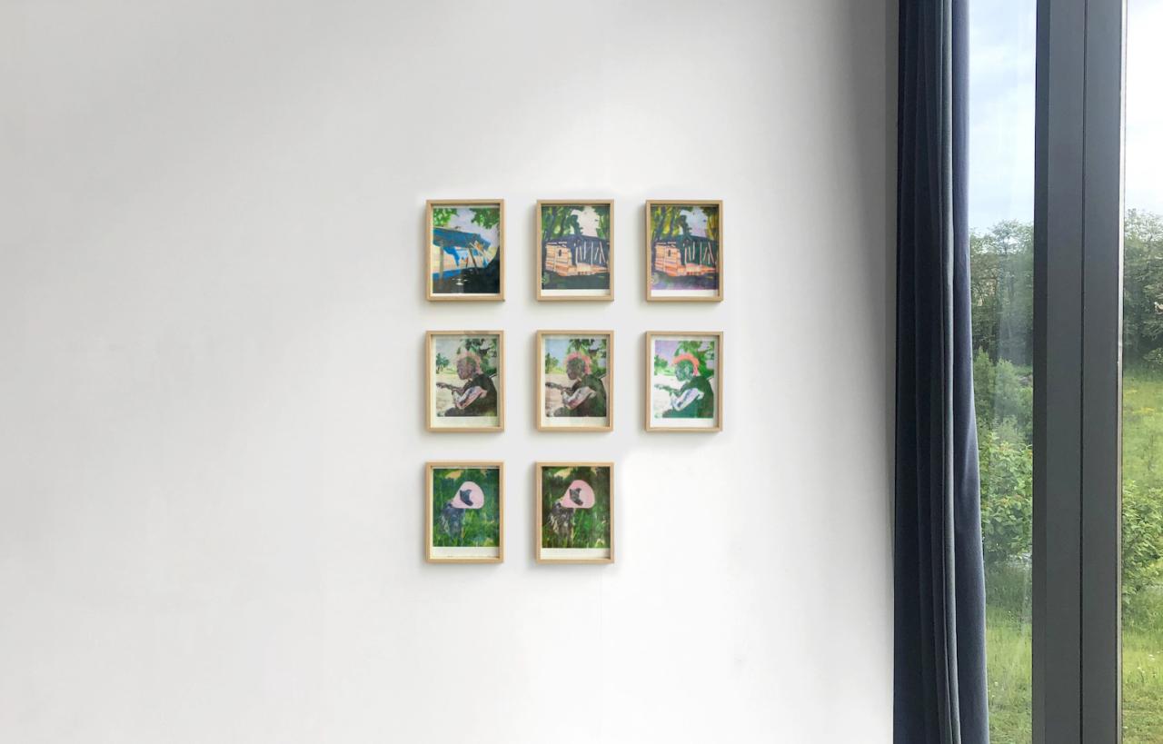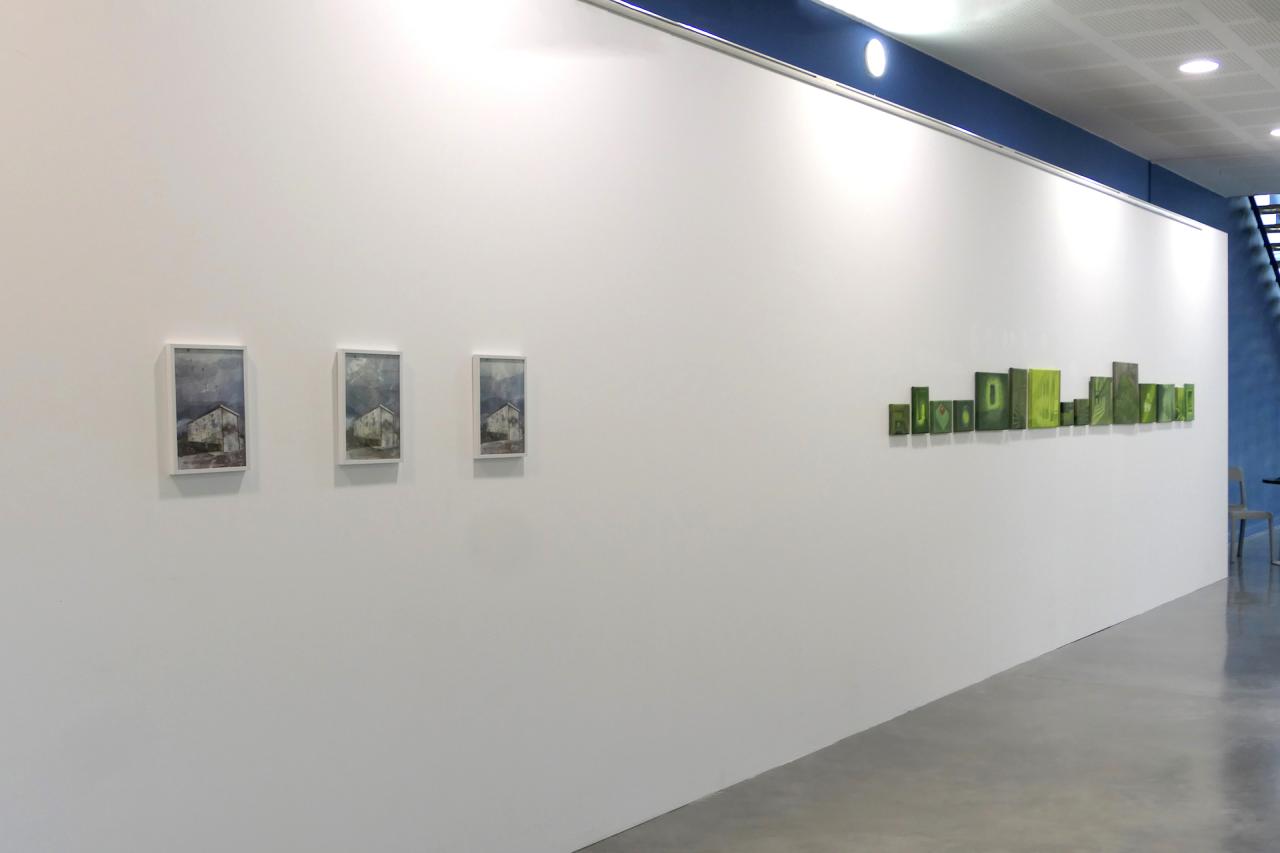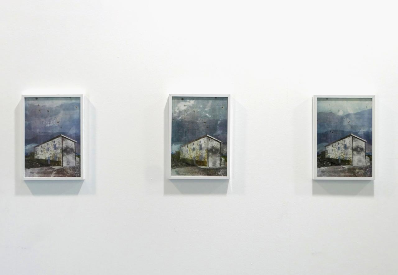 Chemin Château Mendelssohn, 2020, série de 15 transferts rehaussés, vue de l’exposition personnelle Preuves fragiles et imparfaites, 2024, L’Escal, Nailloux
