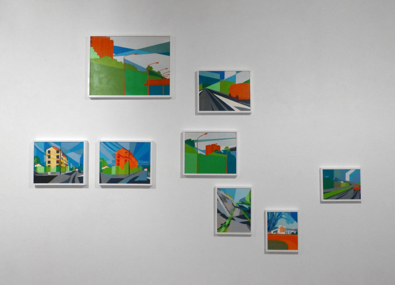 Bombe, acrylique et huile sur carton toilé, dimensions variables