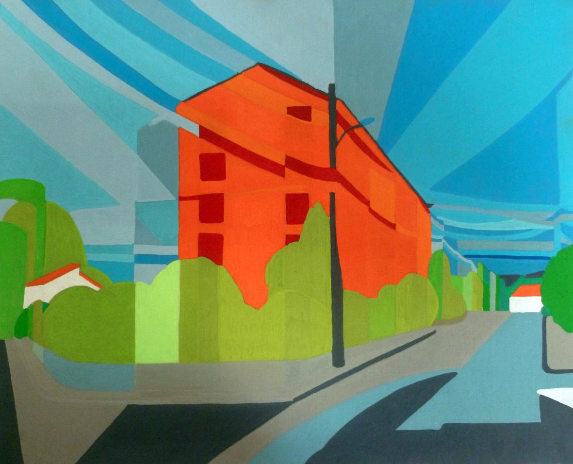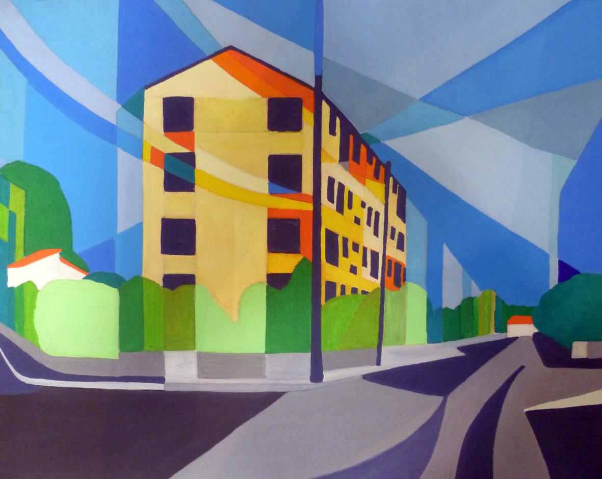 Les paysages de Sophie Bacquié sont toujours la saisie d’un instant géométrique du motif qu’il soit urbain ou non.