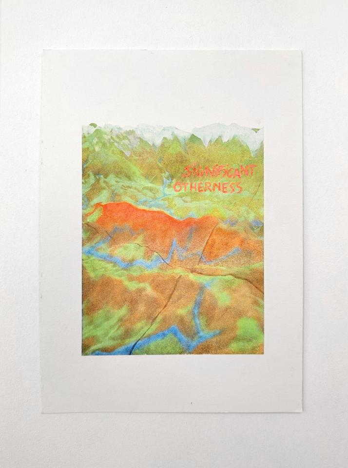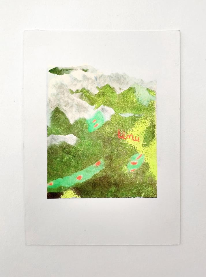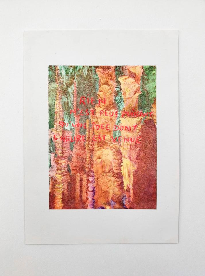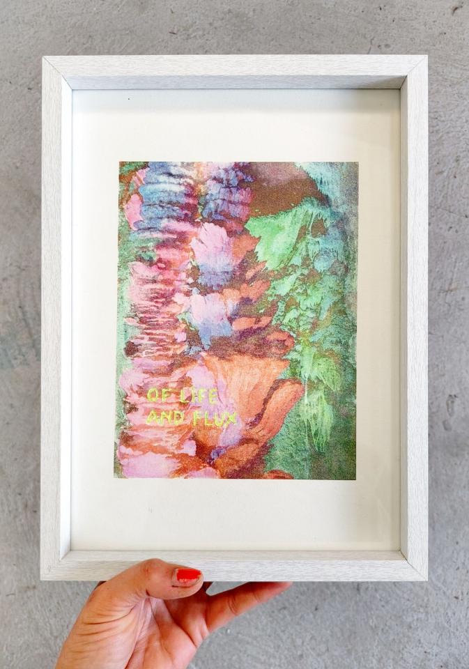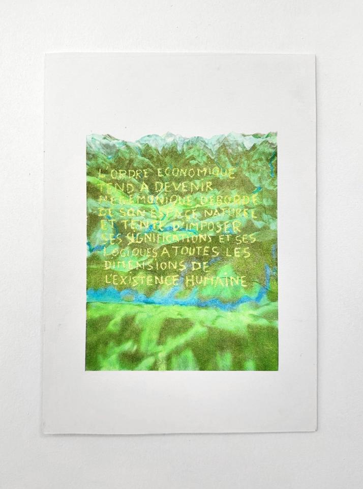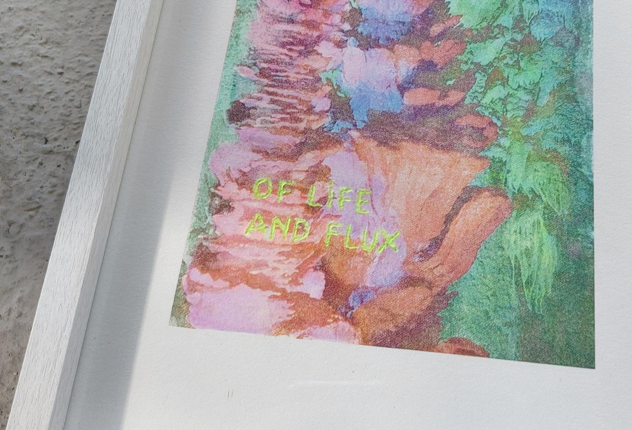 Of life and flux, 2025, transfert rehaussé et gravé sur papier