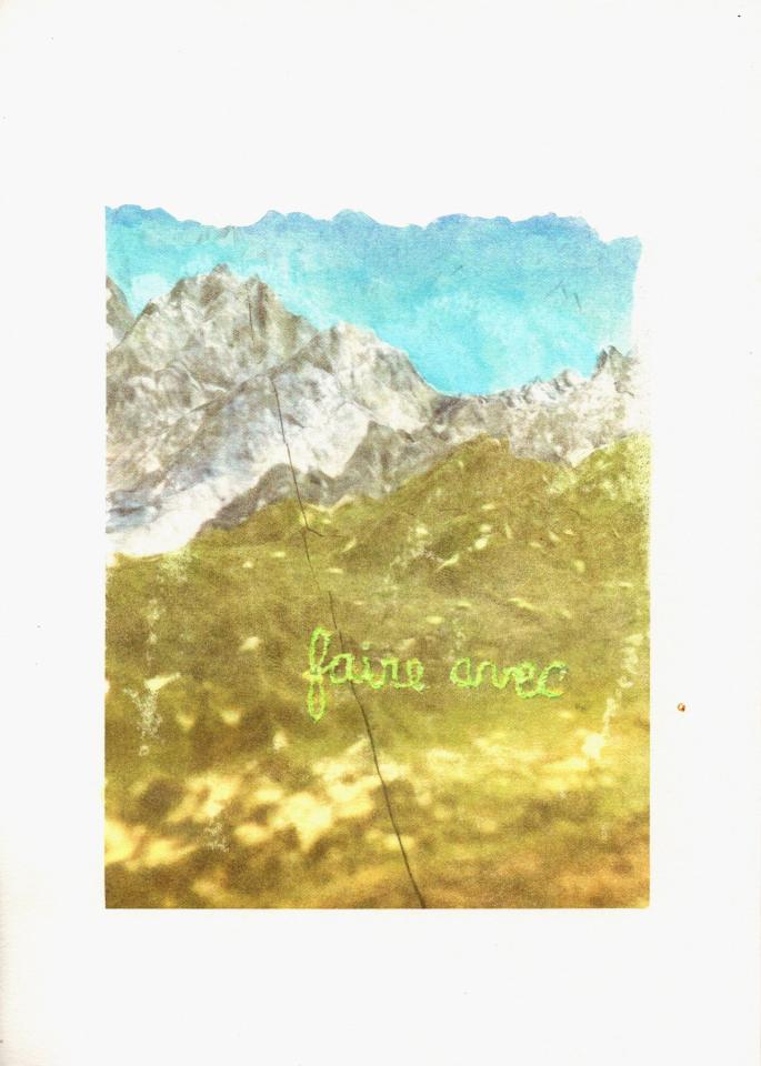 Faire avec, 2025, transfert rehaussé et gravé sur papier