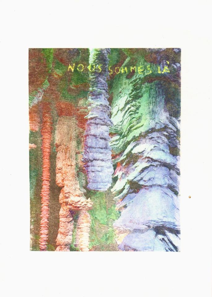 Nous sommes là, 2025, transfert rehaussé et gravé sur papier
