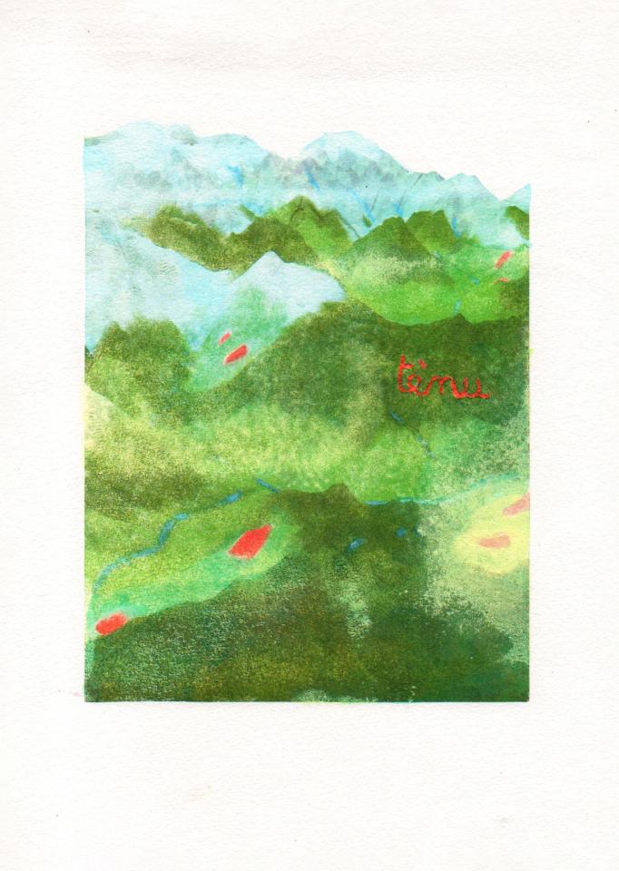 Ténu, 2025, transfert rehaussé et gravé sur papier