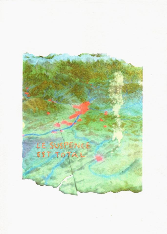Le supence est total, 2025, transfert rehaussé et gravé sur papier