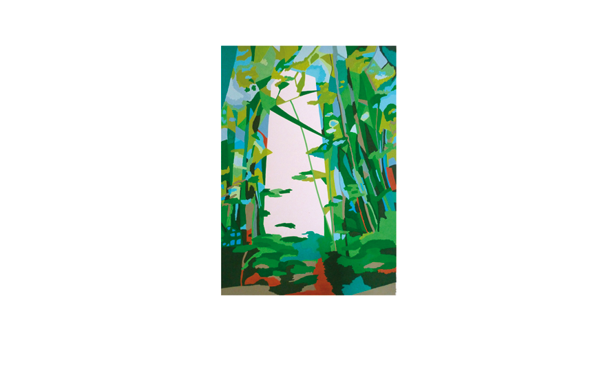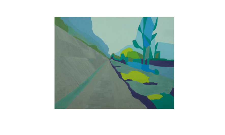 En Nouvelle-Guinée, dans la culture Kalouli, les bruits de la vie, le paysage sonore (pilons, chants d’oiseaux, bruits d’eau qui court) interfèrent, aident à construire, soutendent les chants quotidiens. De la même manière, dans mes peintures, les motifs urbains structurent mes compositions. Les lignes d’horizons, les troncs, branches, fils électriques, trainées de condensation des avions, réagréages de goudron intensifient le zonage.