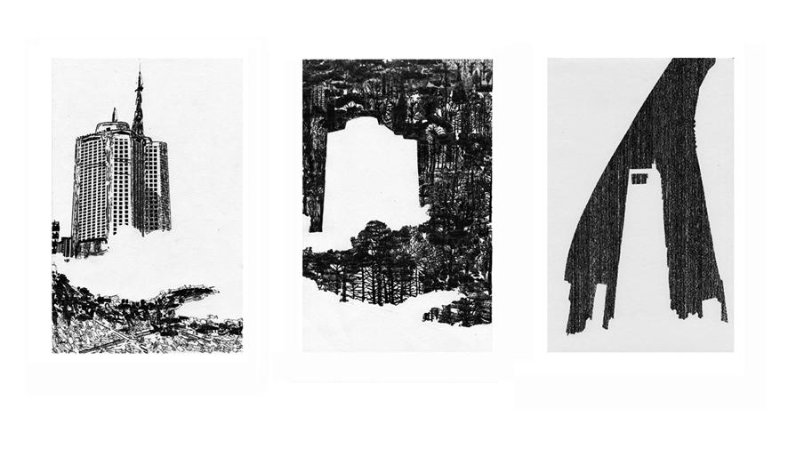 Ces paysages peints sont issus de la série The walking dead. C’est étonnant de voir à quel point les paysages post-apocaptyques sont présents dans la production cinématographique, télévisuelle comme dans celle des jeux vidéo. Est-ce un fantasme d’anéantissement de la civilisation qu’à défaut de pouvoir changer on veut détruire? La série est en cours et utilise également des images de Fukushima.