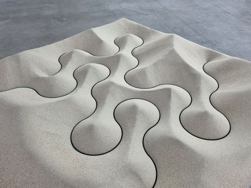Si les œuvres proposées par Suzy Lelièvre empruntent au vocabulaire de l’abstraction, de la morphogenèse et de la topologie, elles sont néanmoins le fruit de gestes qui se confrontent à la matière. Son travail, sans cesse traversé par la dualité entre rationnel et sensible, explore la rencontre entre des protocoles de déformations et des gestes d’incisions, de répétitions, de rotations, de courbes et de pliages. (…)