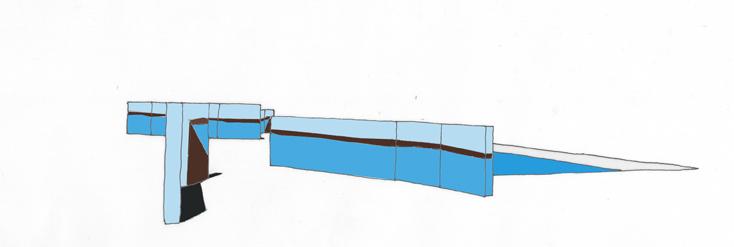 Une boîte comprenant un « kit » de paysage fictif sous forme de deux paravents posés chacun sur un socle. L’ensemble représente une illusion optique. La boîte permet de préserver le « paysage » de la poussière et d’autres intempéries. Aussi le contenu (paravents + socles) ne sera pas obligé d’être à l’extérieur perpétuellement. Le contenant est à l’échelle d’une boîte à chaussure, dont la forme aurait l’idée d’un tank de protection.