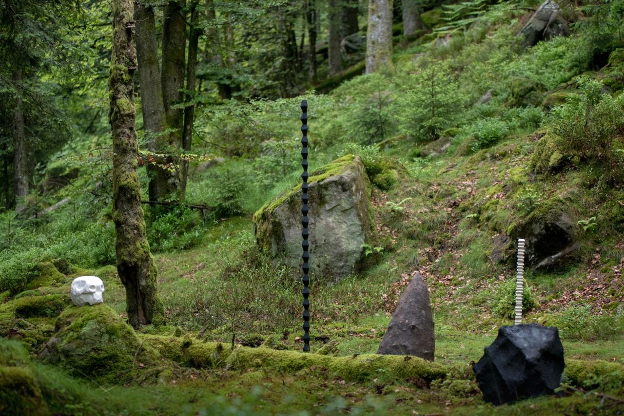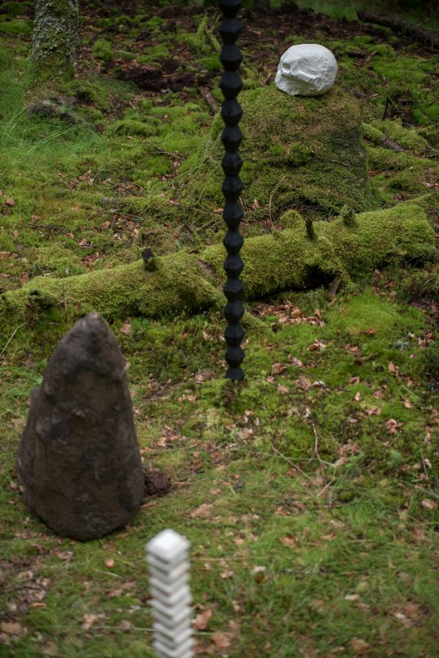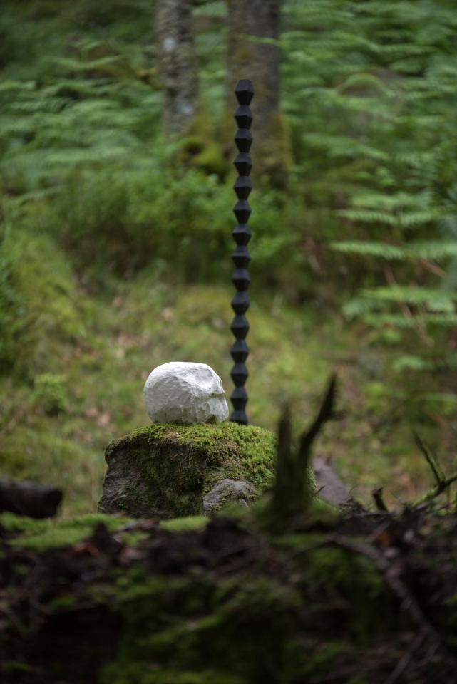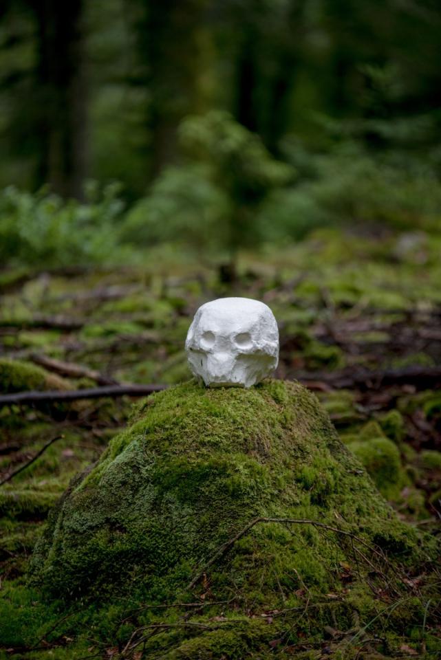 Reste, 2016, papier mâché, bois, osier, colle de peau, craie, sciure, Le Sentier des Passeurs, 2016, détails, photos Pierre Rich
